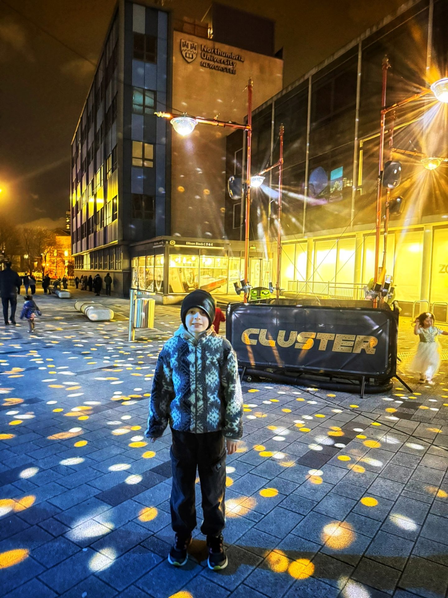 Enchanted City takes place across Northumbria University’s City Centre Campus, with the entrance on the corner of Northumberland Road and College Street, just by the City Hall stage door. It’s fully outdoors, designed for winter, and yes, the programme is absolutely right when it says “wear all the layers.” We did, and we still looked like extras from an Arctic documentary by the end of it.