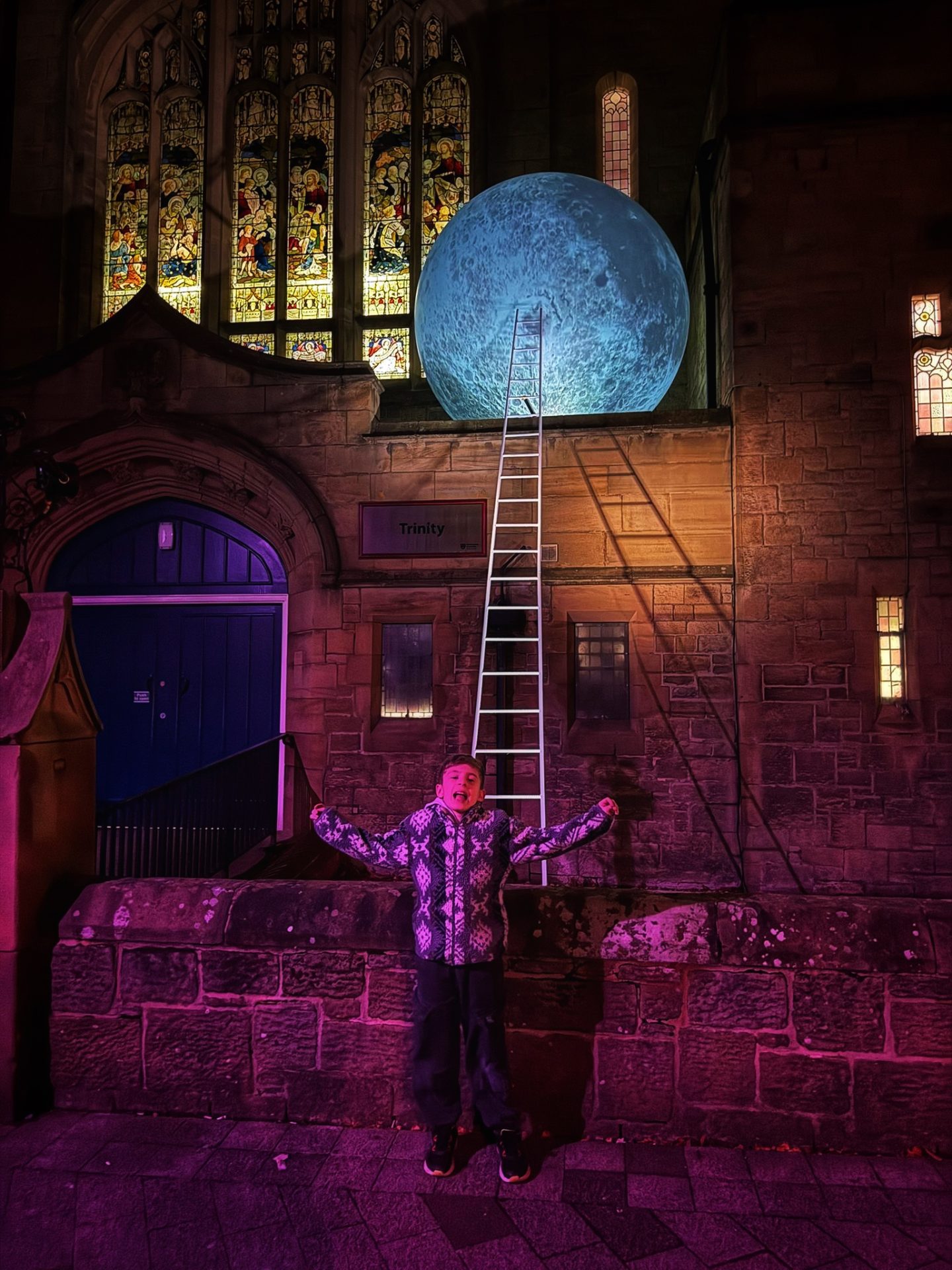 We wrapped ourselves in scarves, hats, and that extra layer you only bother with once you’re over 45, and headed into town for Enchanted City. It was properly cold, but the lights, colour, and quiet magic made it feel worth every frozen fingertip.
