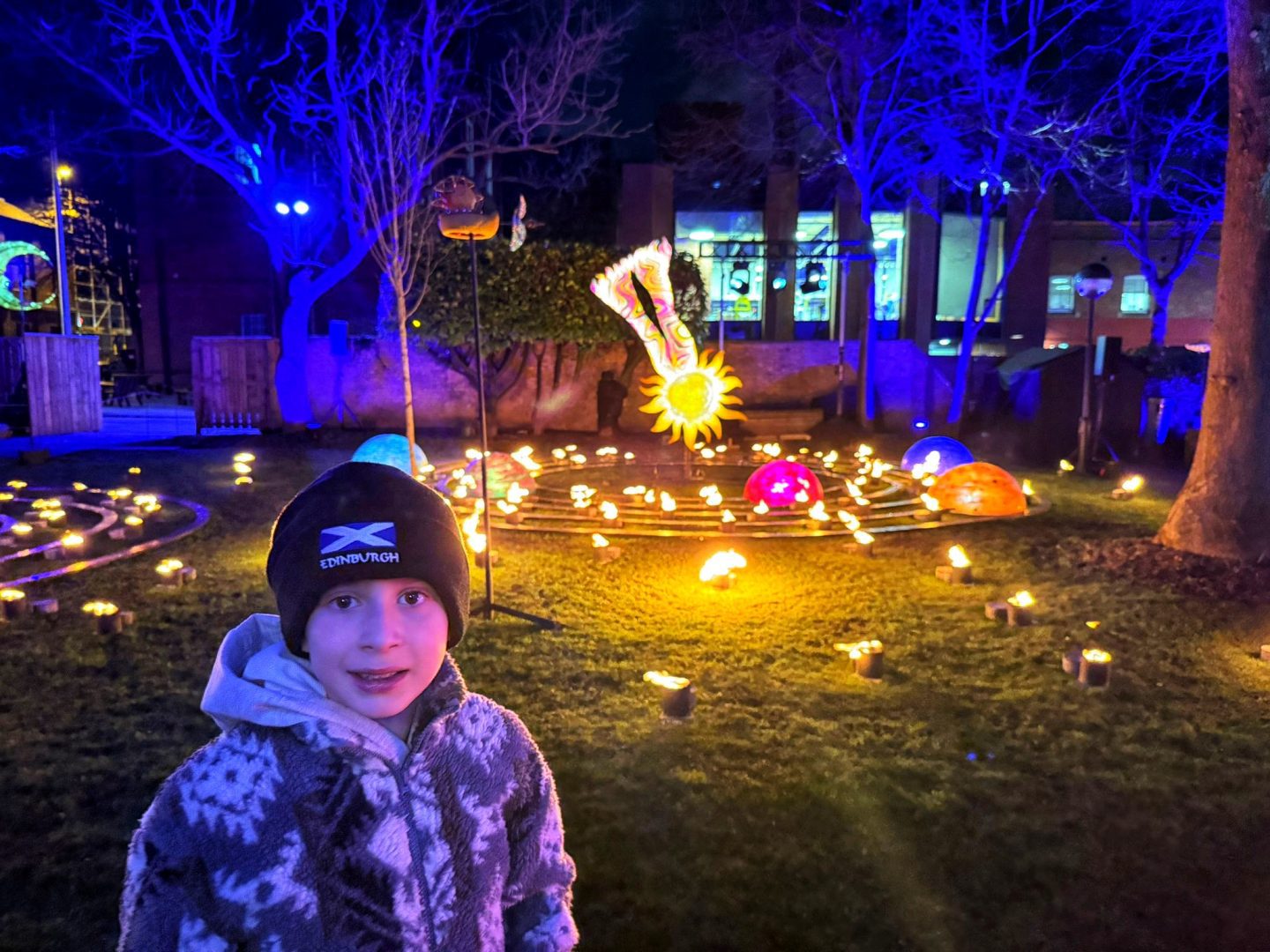 The programme describes Enchanted City as “a family-friendly, out-of-this-world after-dark adventure, featuring space-inspired projection, light installations, fire, performance, interactive workshops and more,” and that mix of fire and performance turned out to be the part that stayed with us most.